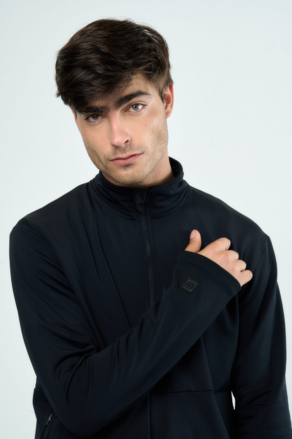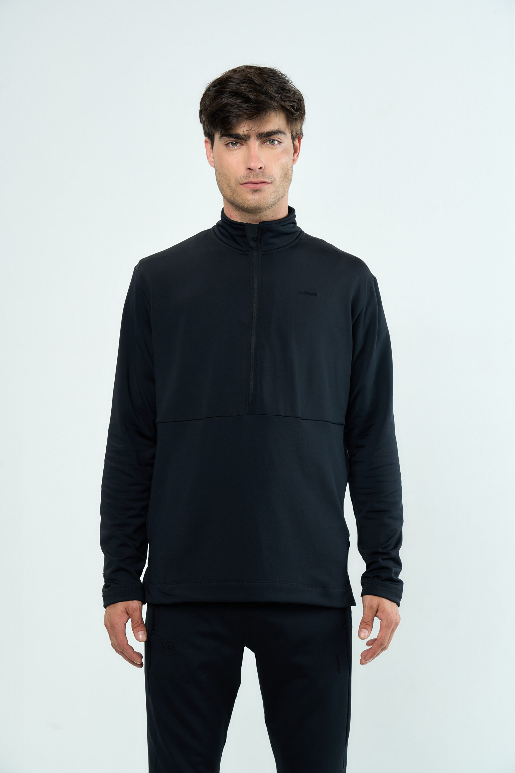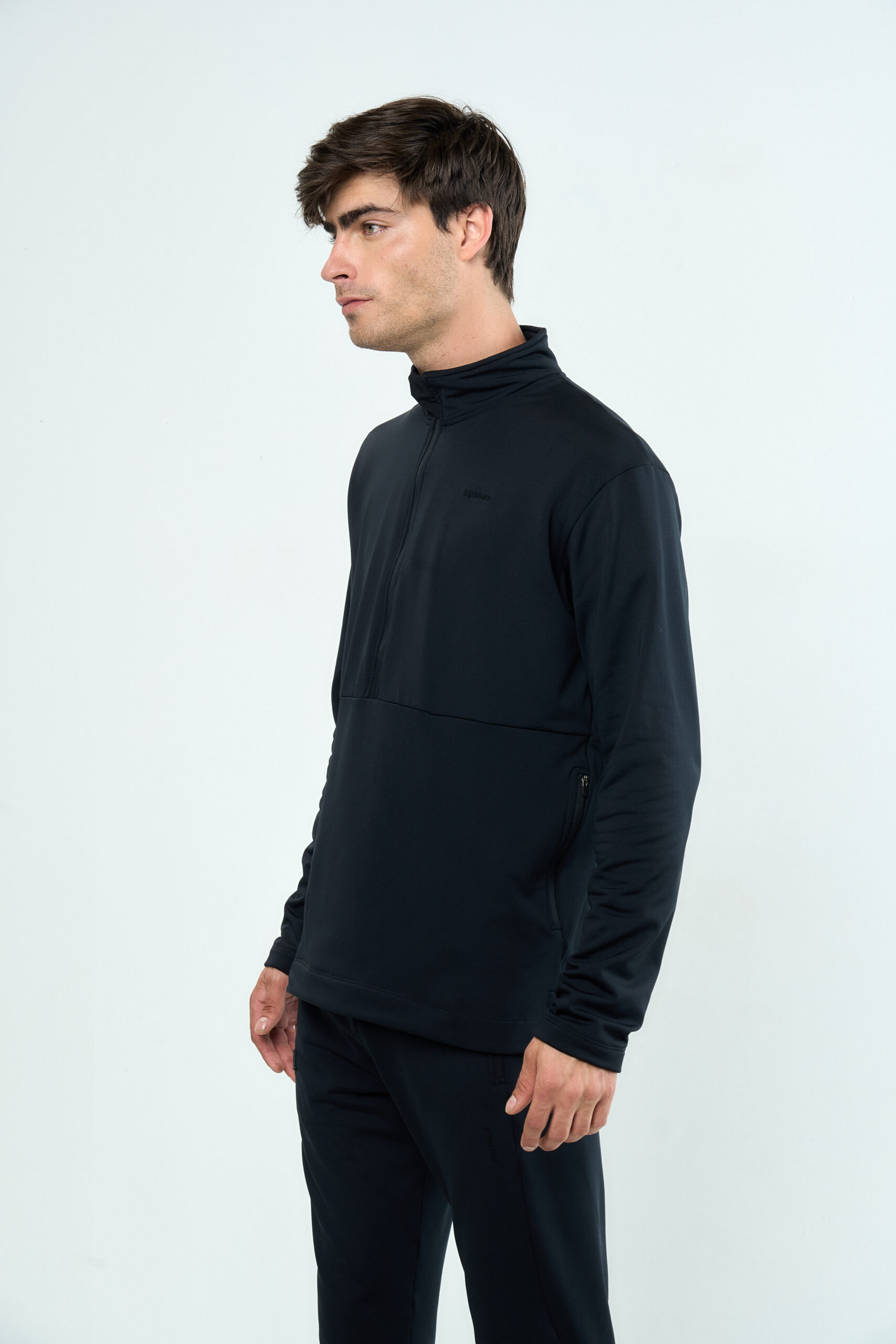 Buzo medio cierre en tejido confort frisado que potencia las propiedades térmicas de la prenda y gracias a su composición con spandex se adapta perfectamente al cuerpo para un libre movimiento. Con bolsillos con cierres, cuello alto con medio cierre frontal y detalle bordado. Diseño versátil para su uso en actividades outdoor como para su uso urbano.