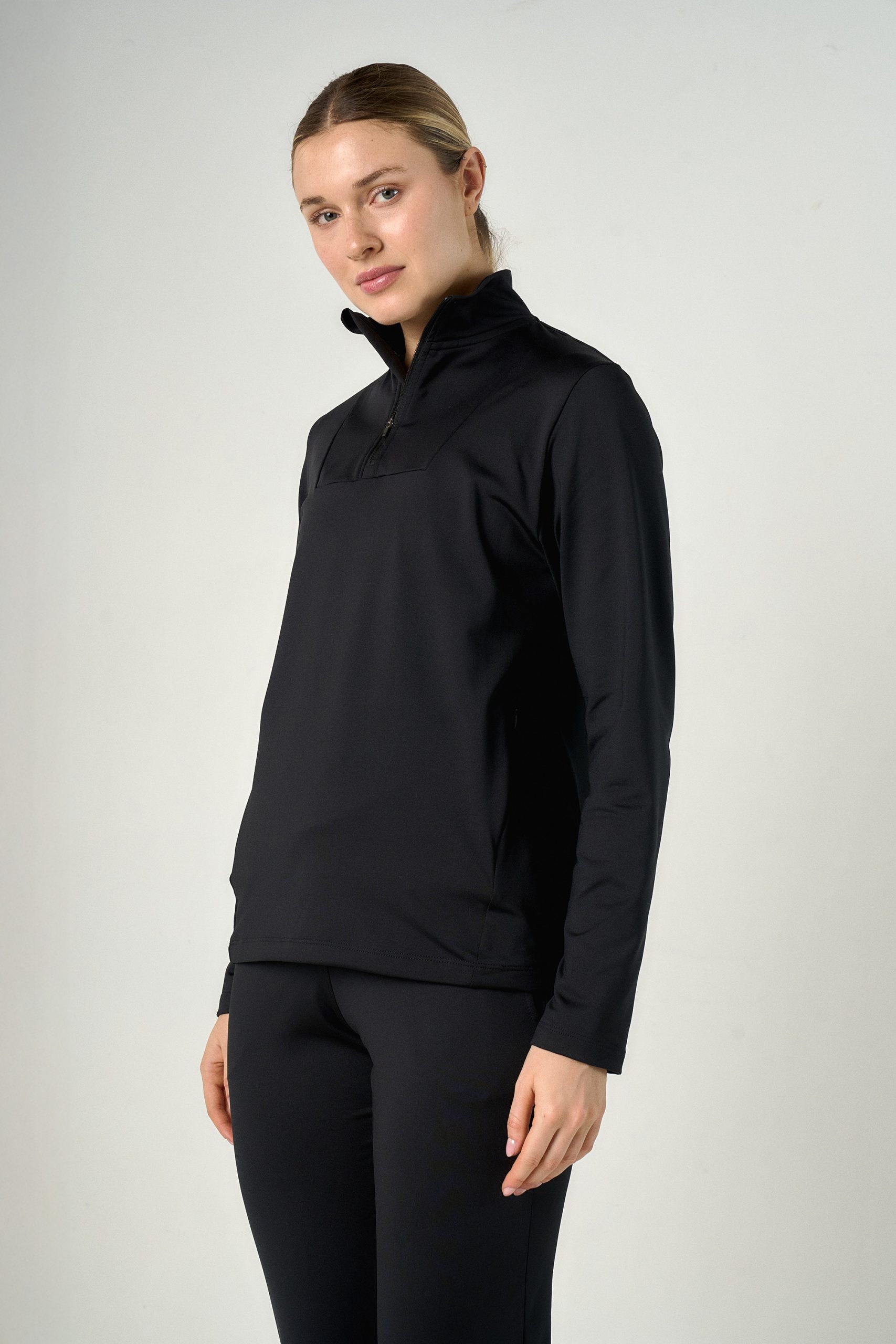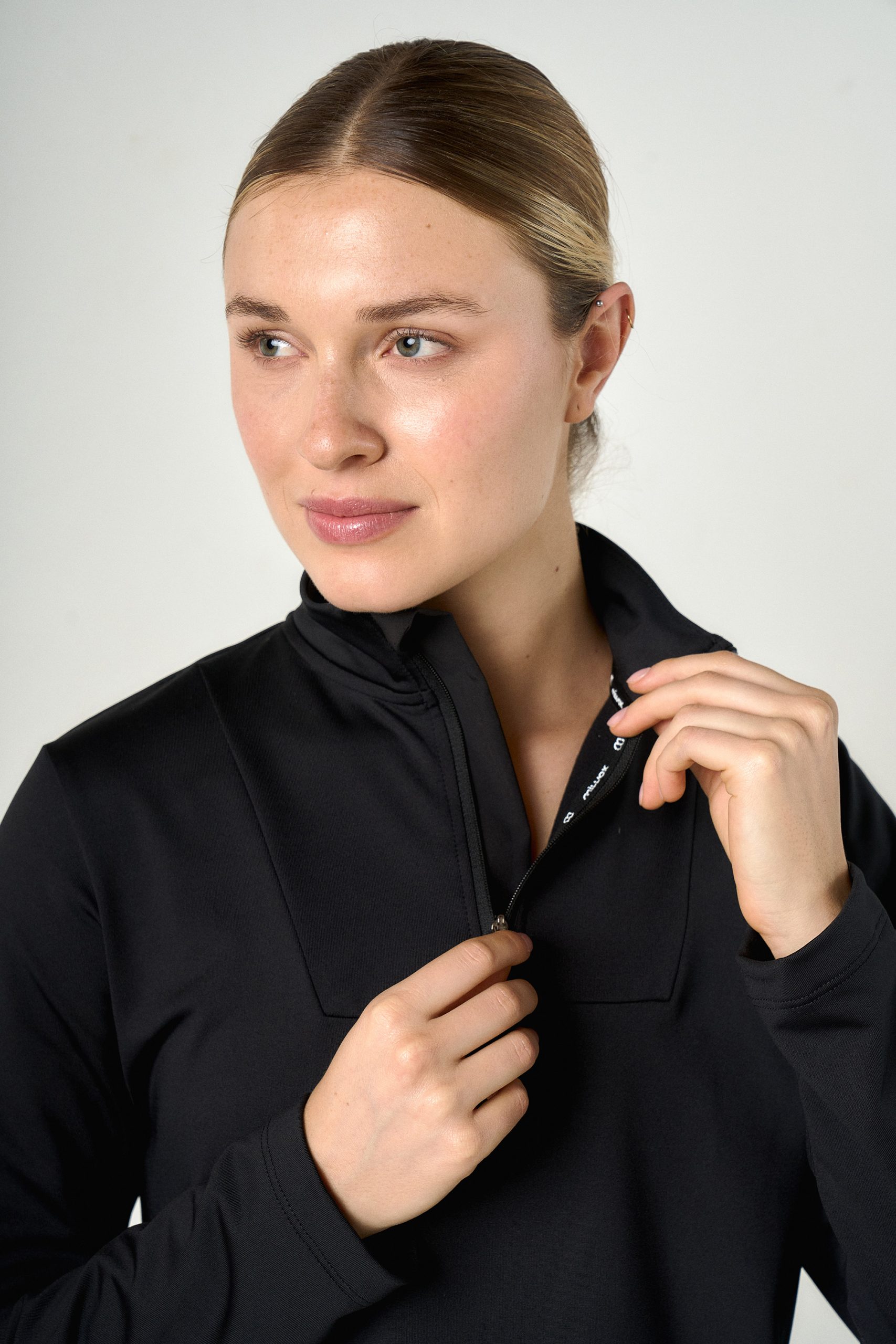Buzo de corte recto con recorte en canesú y medio cierre frontal con tapacierre a modo de vista interna. Posee bolsillos frontales con cierre