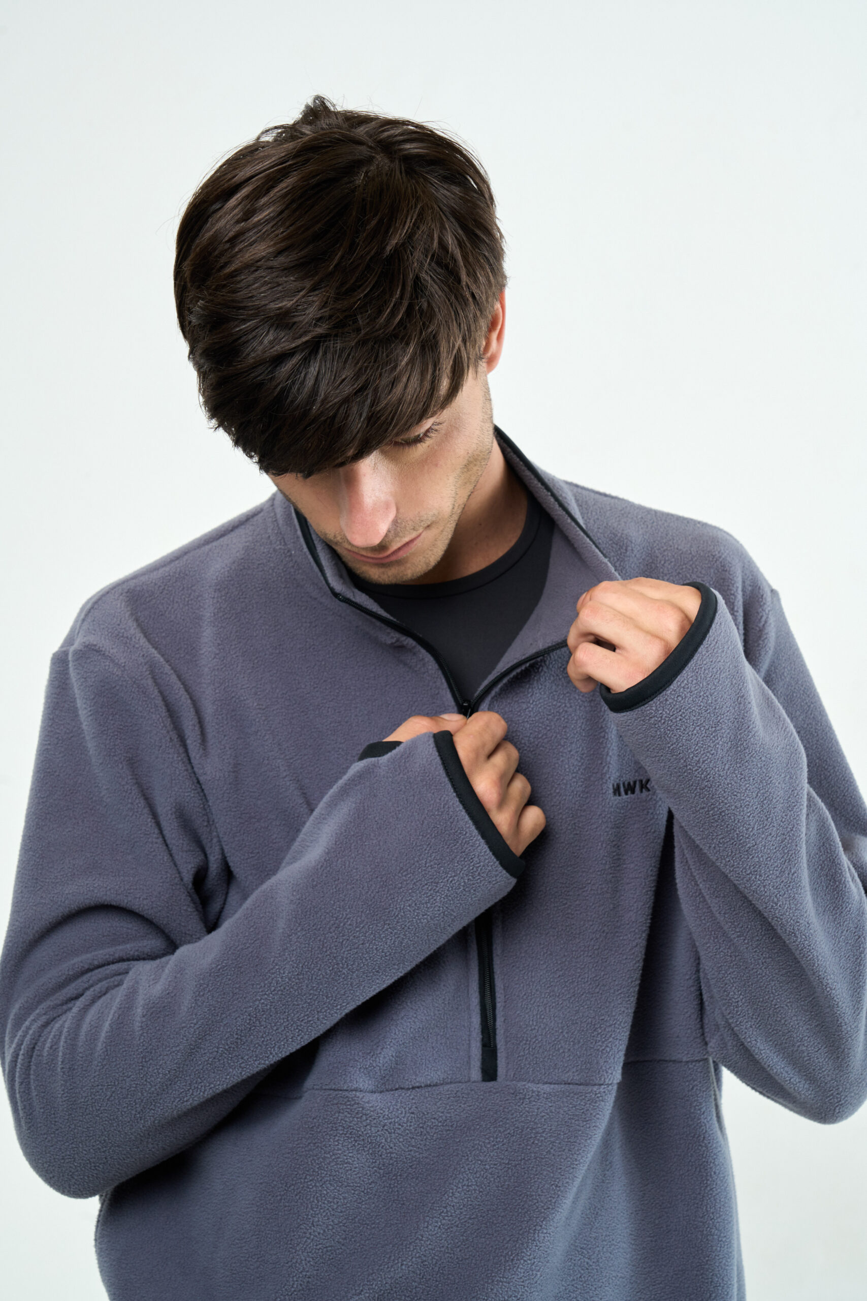 Buzo medio cierre de calce amplio en tela MicroPolar de secado rápido; con bolsillos laterales, cierre frontal con detalle envivado y bordado. Tejido frisado con tratamiento interno que potencia las propiedades térmicas de la prenda y antipeeling en cara externa, para mayor durabilidad. Diseño versátil para su uso en actividades outdoor como para su uso urbano.
