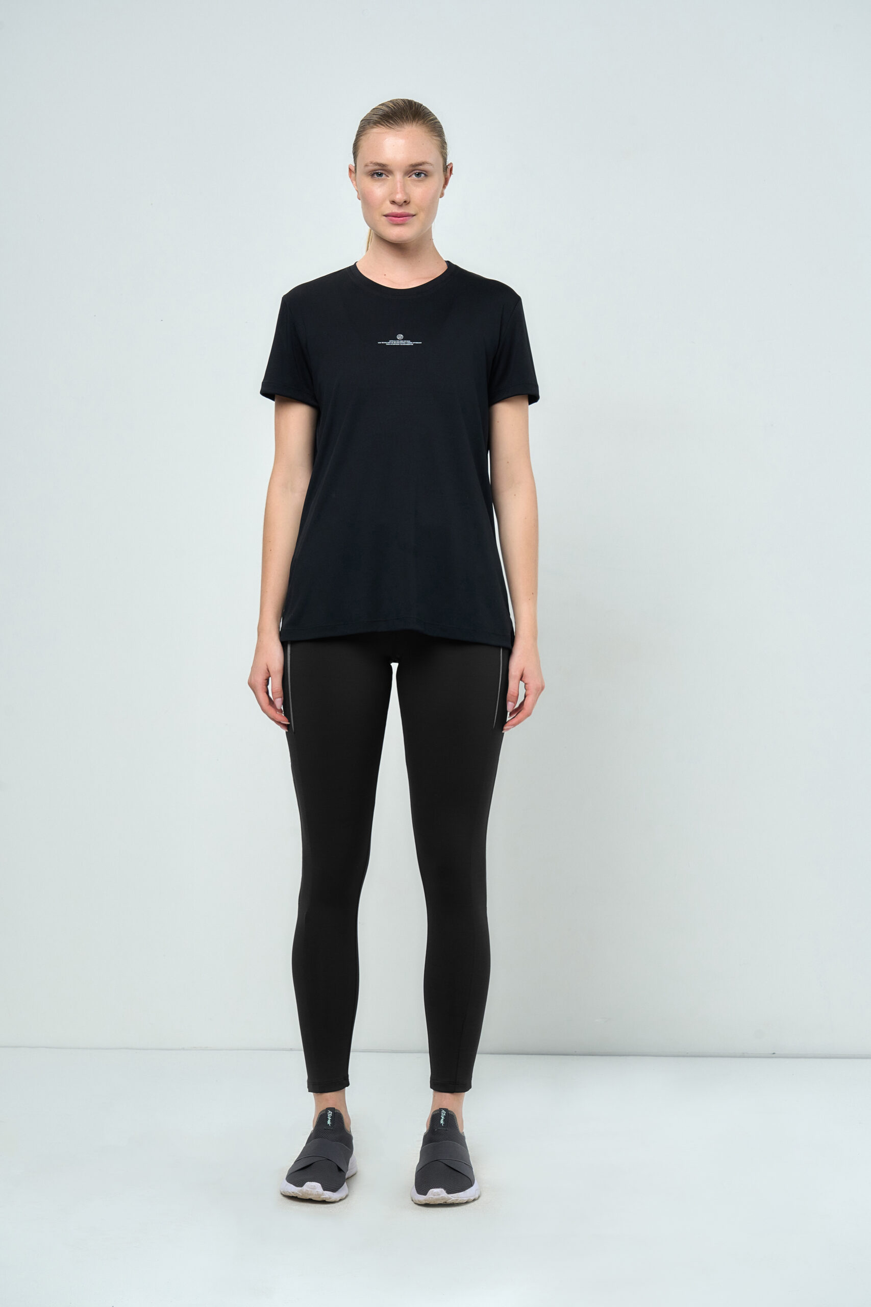 Calza deportiva combinada con vivos reflex, confeccionada con tejido hecho 100% a partir de botellas plásticas recicladas. Sus vivos reflex mantienen tus entrenamientos visibles in-
