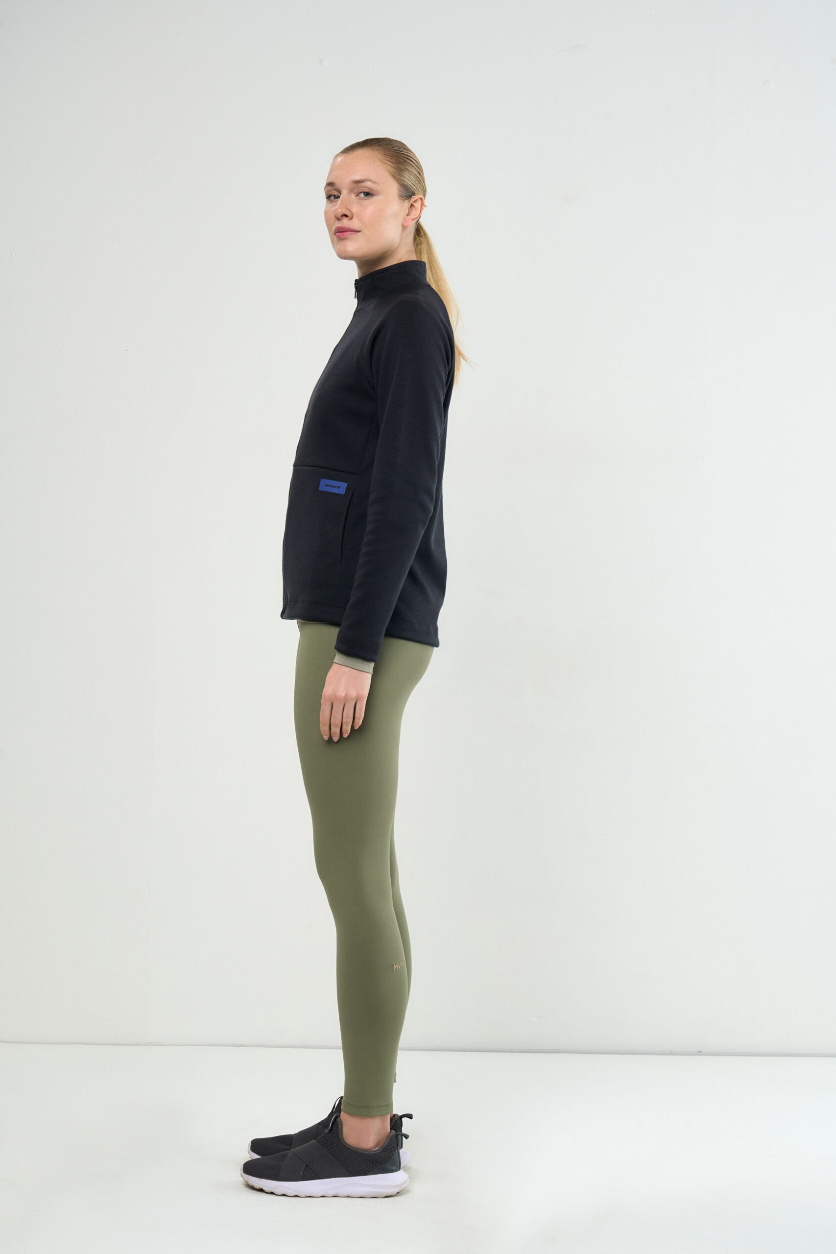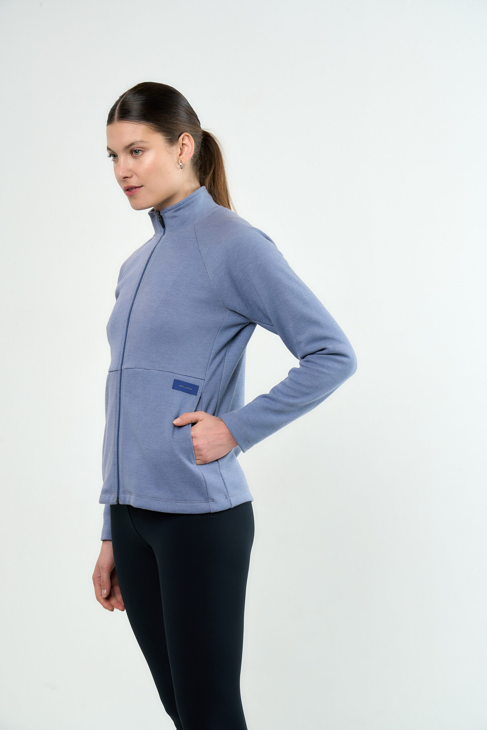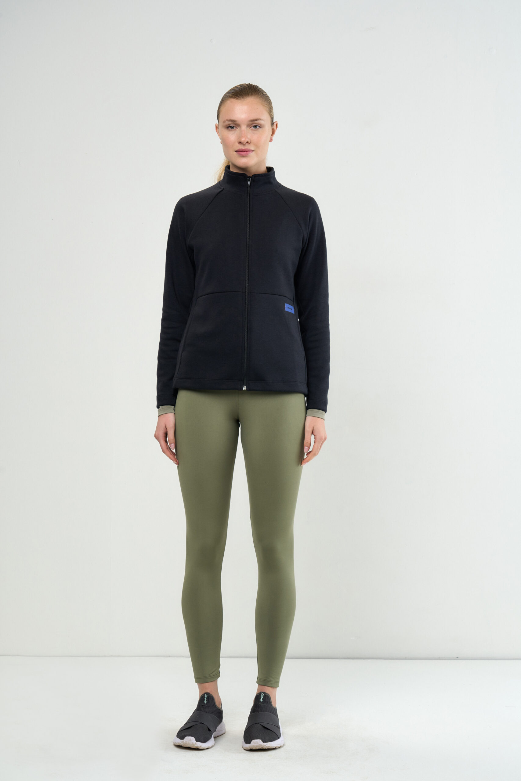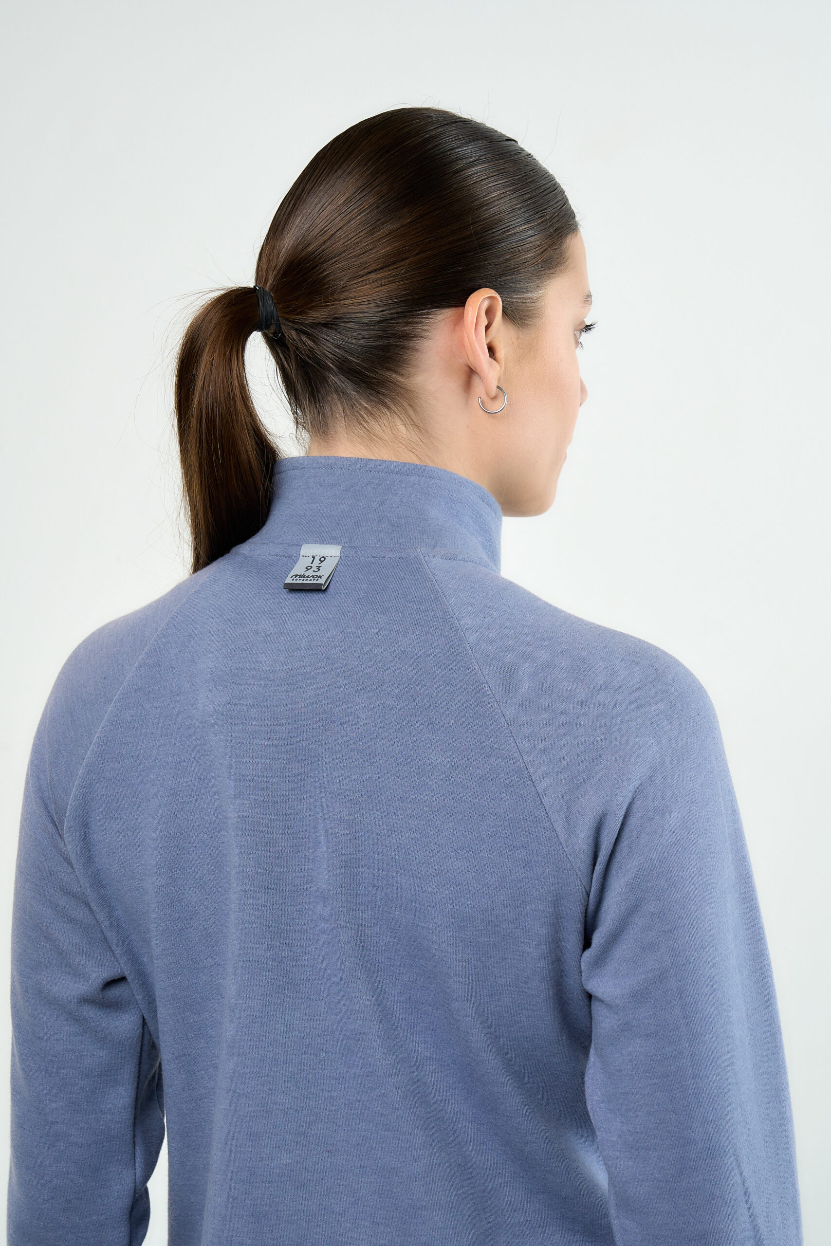 Campera deportiva clásica en jersey doble de algodón mezcla con detalle de aplicación reciclada.