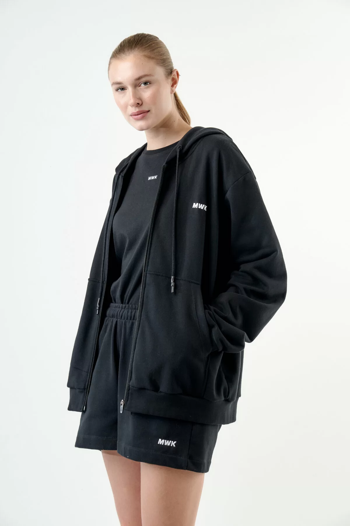 Campera de calce holgado, con bolsillos frontales y capucha, presenta puños en mangas y cintura para ofrecer mayor confort en cada uso. Confeccionado en rústico ideal para media estación. Presenta detalles sutiles de bordado MWK al frente y etiqueta en la espalda.