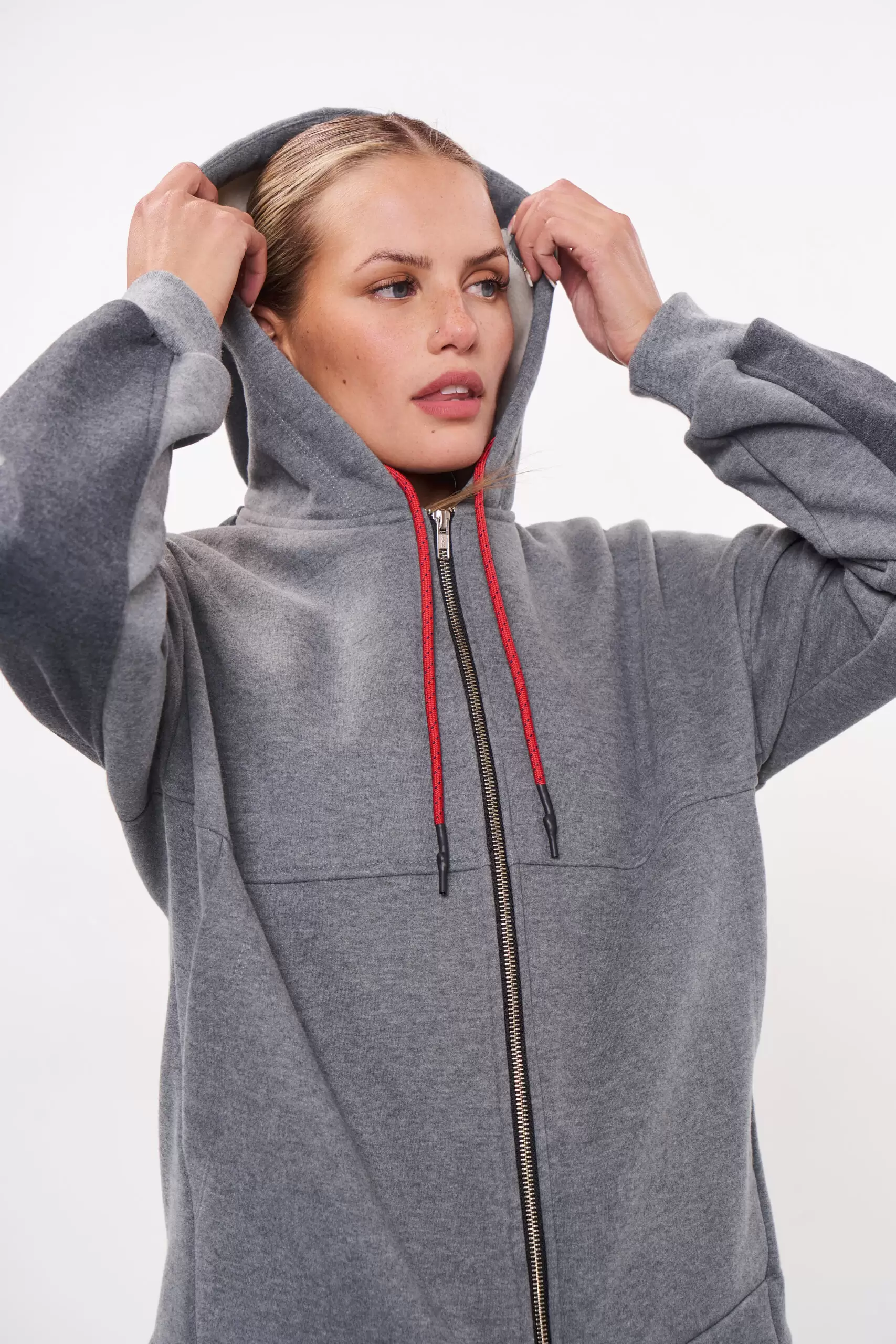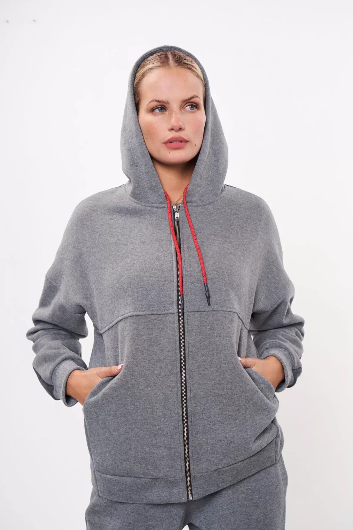 Campera con capucha, de diseño amplio que brinda mayor libertad de movimiento durante las actividades diarias. Confeccionada en un textil delicado y muy abrigado, ofrece una excelente combinación de confort y protección para los días frescos. Su interior suave al tacto garantiza una sensación térmica agradable, mientras que la capucha con cordón regulable y el cierre frontal completo aportan practicidad y estilo. Los bolsillos laterales funcionales suman comodidad para el uso cotidiano.