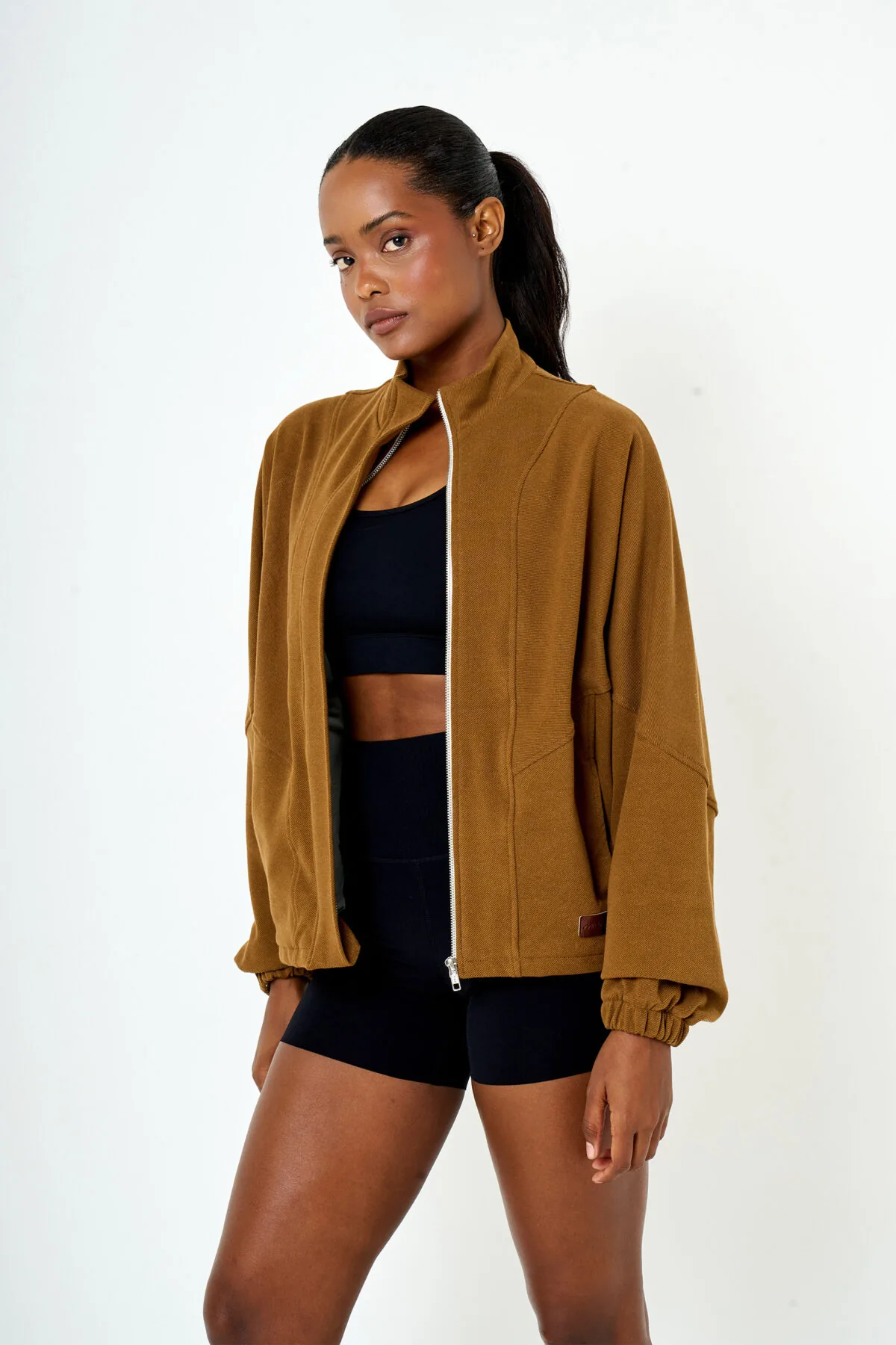 Campera de silueta amplia y diseño versátil, confeccionada en textil texturado de la línea Premium, compuesto por algodón sustentable, viscosa y elastano, que brinda suavidad, elasticidad y una caída natural. Presenta recortes de diseño, tapa en el cierre frontal y bolsillos laterales funcionales, logrando un equilibrio entre comodidad y estilo urbano. Su estructura flexible y su estética contemporánea la convierten en una prenda ideal para uso diario y urbano, destacando por sus terminaciones cuidadas y su impronta de tendencia