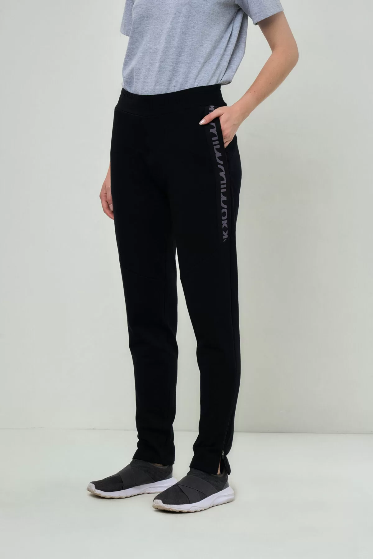 Jogger estilo chupín fabricado en friza de algodón con spandex, ofrece un ajuste cómodo que se adapta a tus movimientos. Además, cuenta con bolsillos ocultos en los laterales sobre un detalle de elástico tejido, lo que agrega un toque de moda. La cintura alta añadida y canesú trasero que agregan un toque distintivo. Además, los cierres en las botamangas le dan
