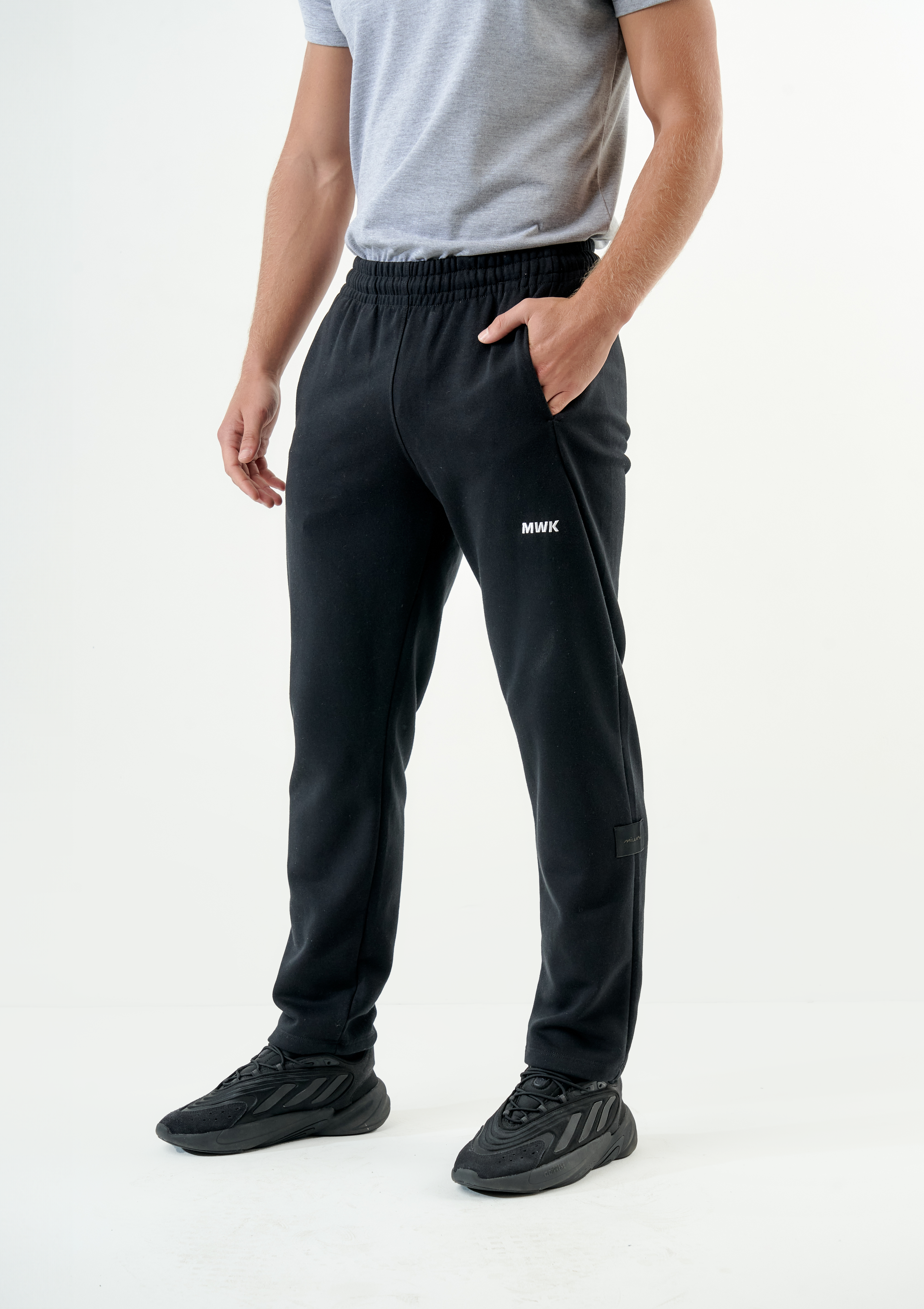 Jogger de calce clásico con bolsillos laterales. Confeccionado con tejidos ligeros y suaves con el confort necesario para todo el dia. Detalle de bordado MWK al frente.