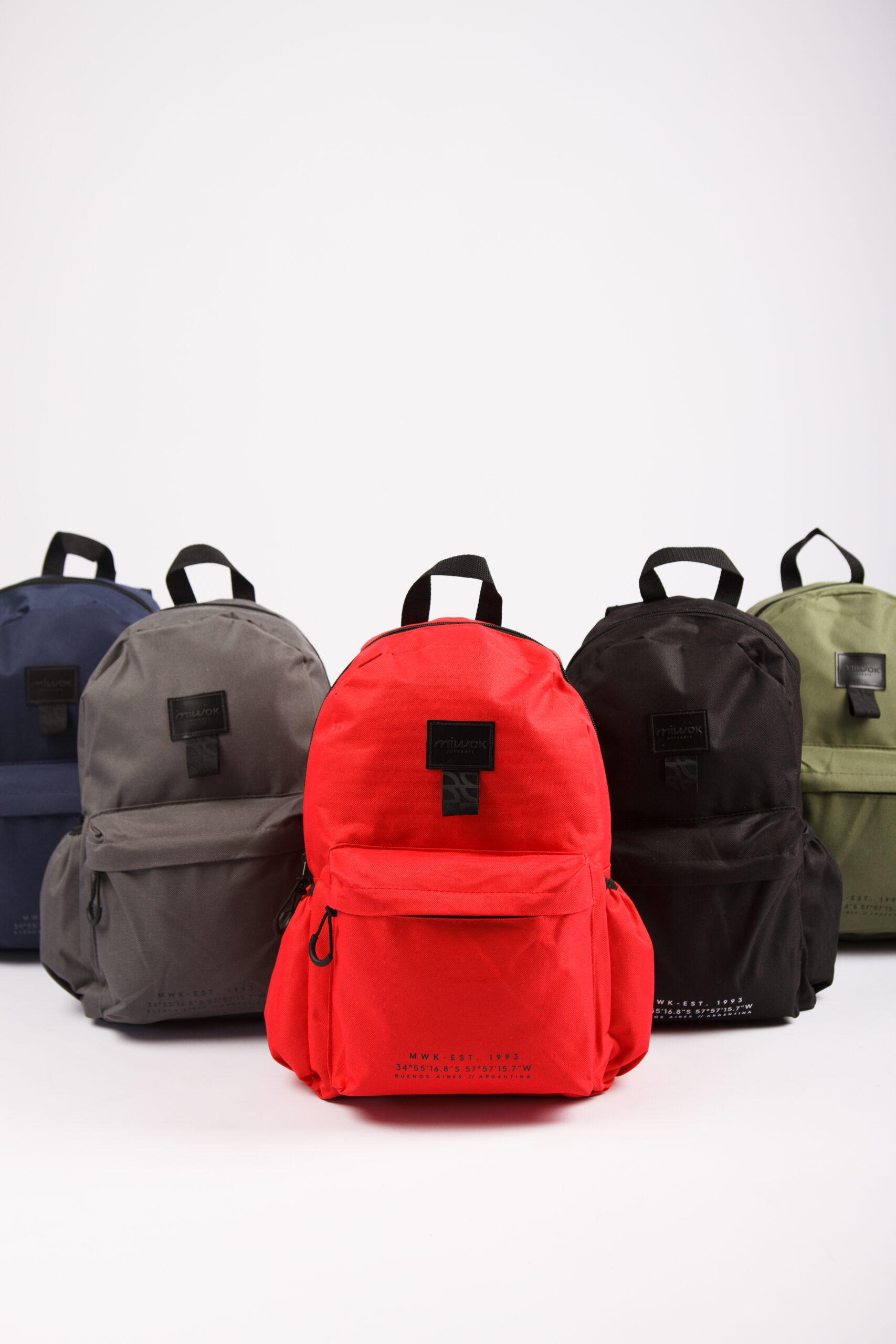 Mochila confeccionada en Polyester, con bolsillo frontal con cierre y 2 bolsillos laterales elásticos . Medidas: 42 cm alto | 27cm ancho | 12cm profundidad. Capacidad 13.5 Lts