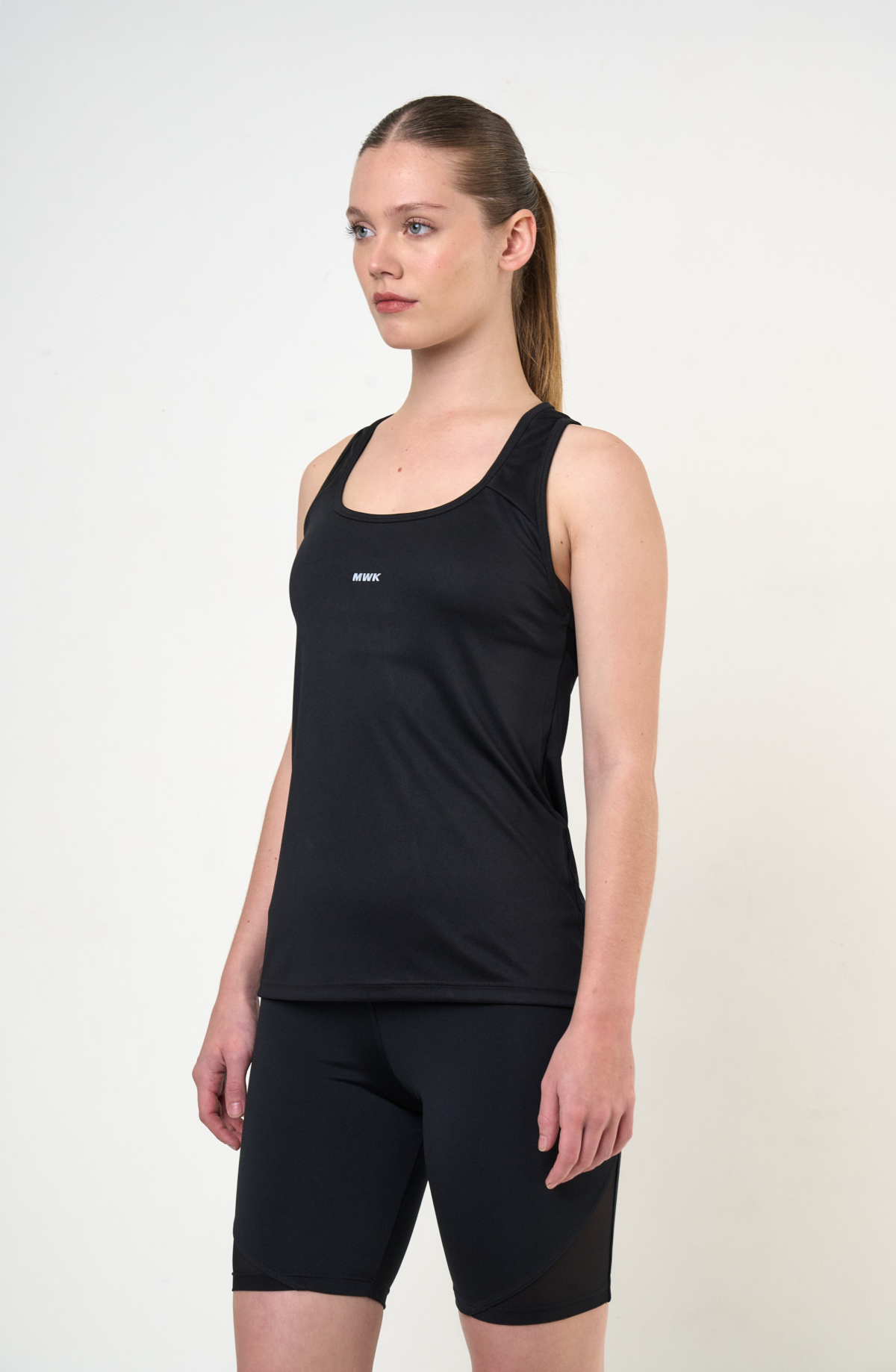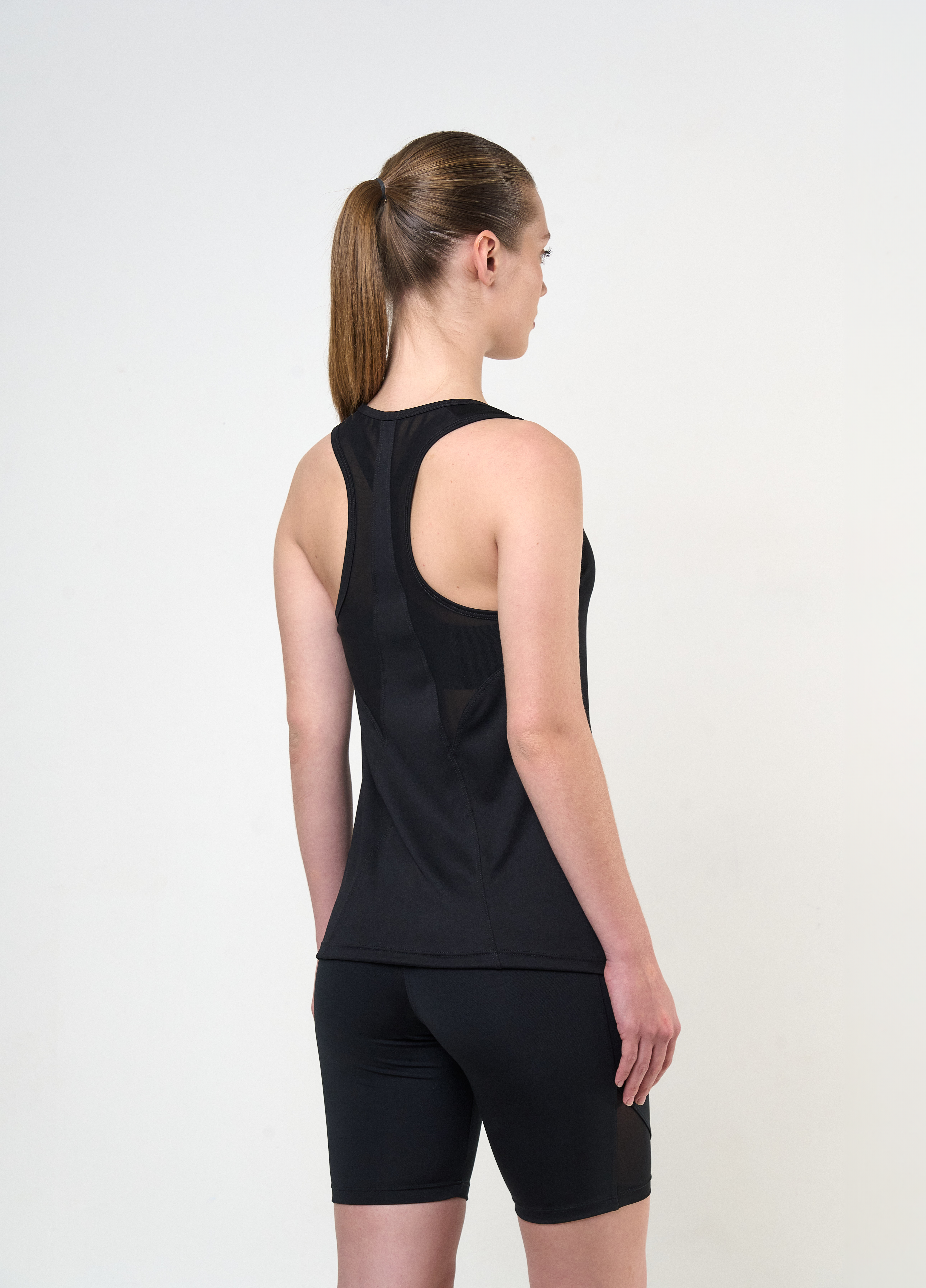 Musculosa de la colección esenciales, con detalles en la espalda de microtul a tono. Confeccionada en textil microset microfibra. Diseño deportivo clásico y funcional para la actividad física.