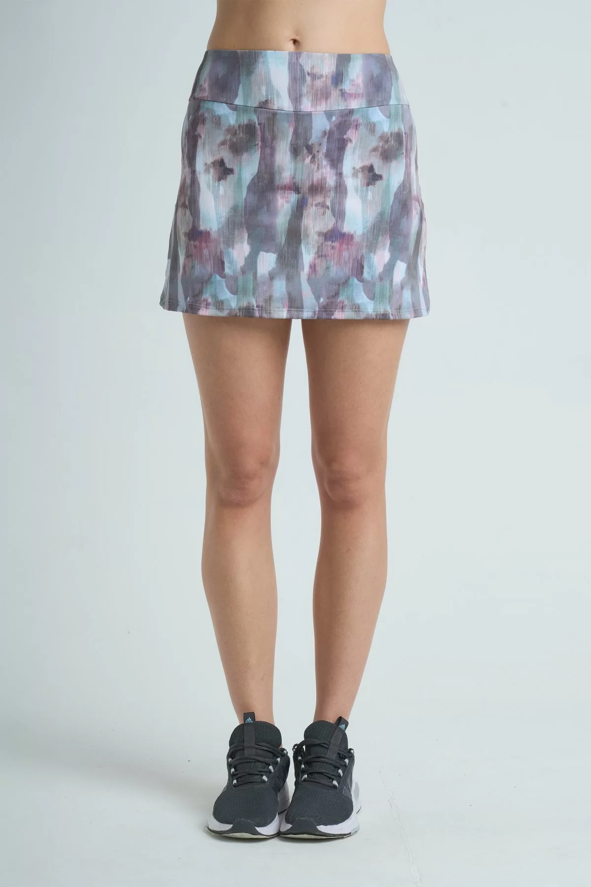 Pollera estampada en microfibra liviana modeladora y confortable, contiene un short interno con bolsillo en el lateral, también contiene un bolsillo sobre el calderín para estar segura y cómoda mientras te moves libremente, ideal para deporte de mediano y alto impacto.