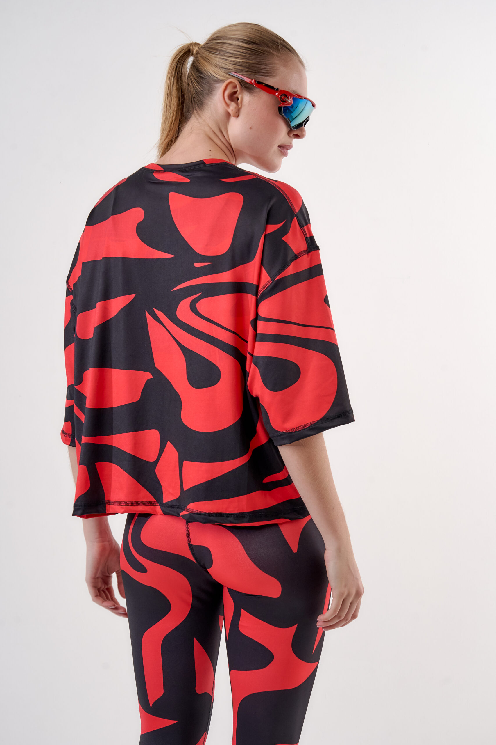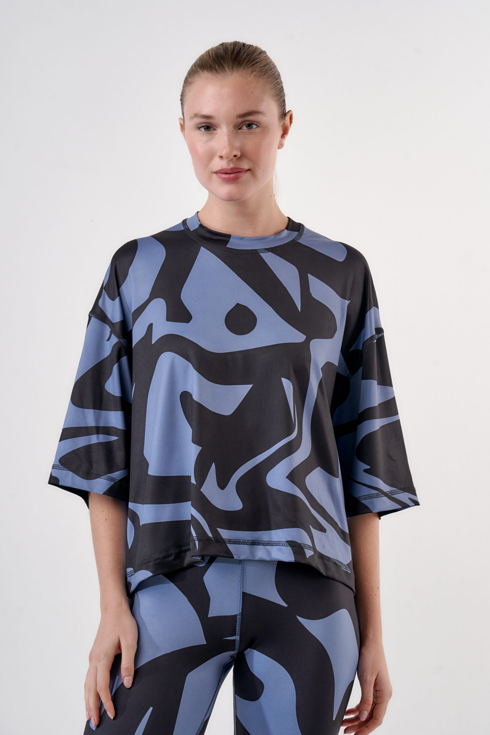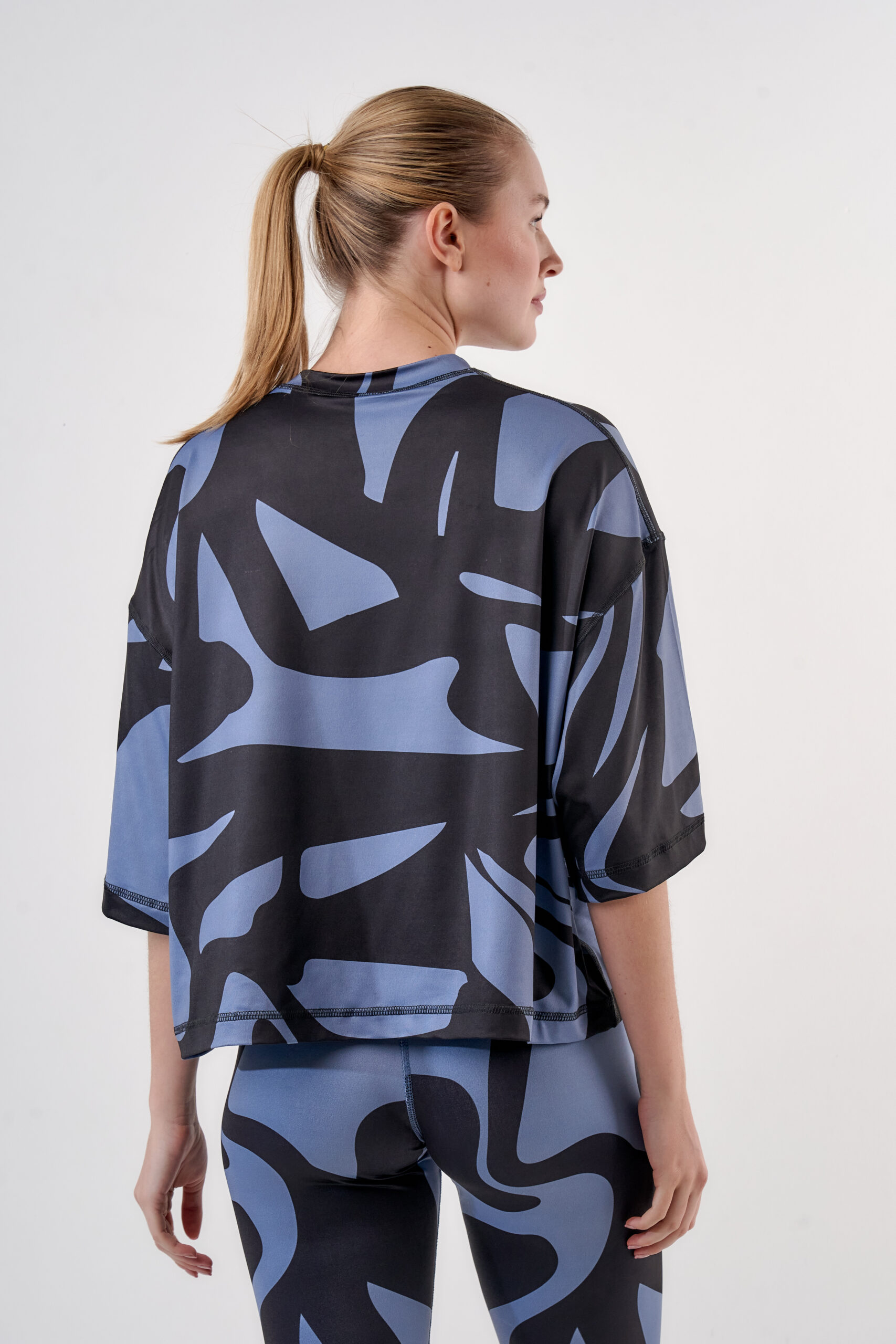 Remera crop holgada ultraliviana reversible FULL PRINT / LISO. Textil de microfibra liviana con spandex que se adapta al cuerpo para ofrecer un libre movimiento y un confort único.