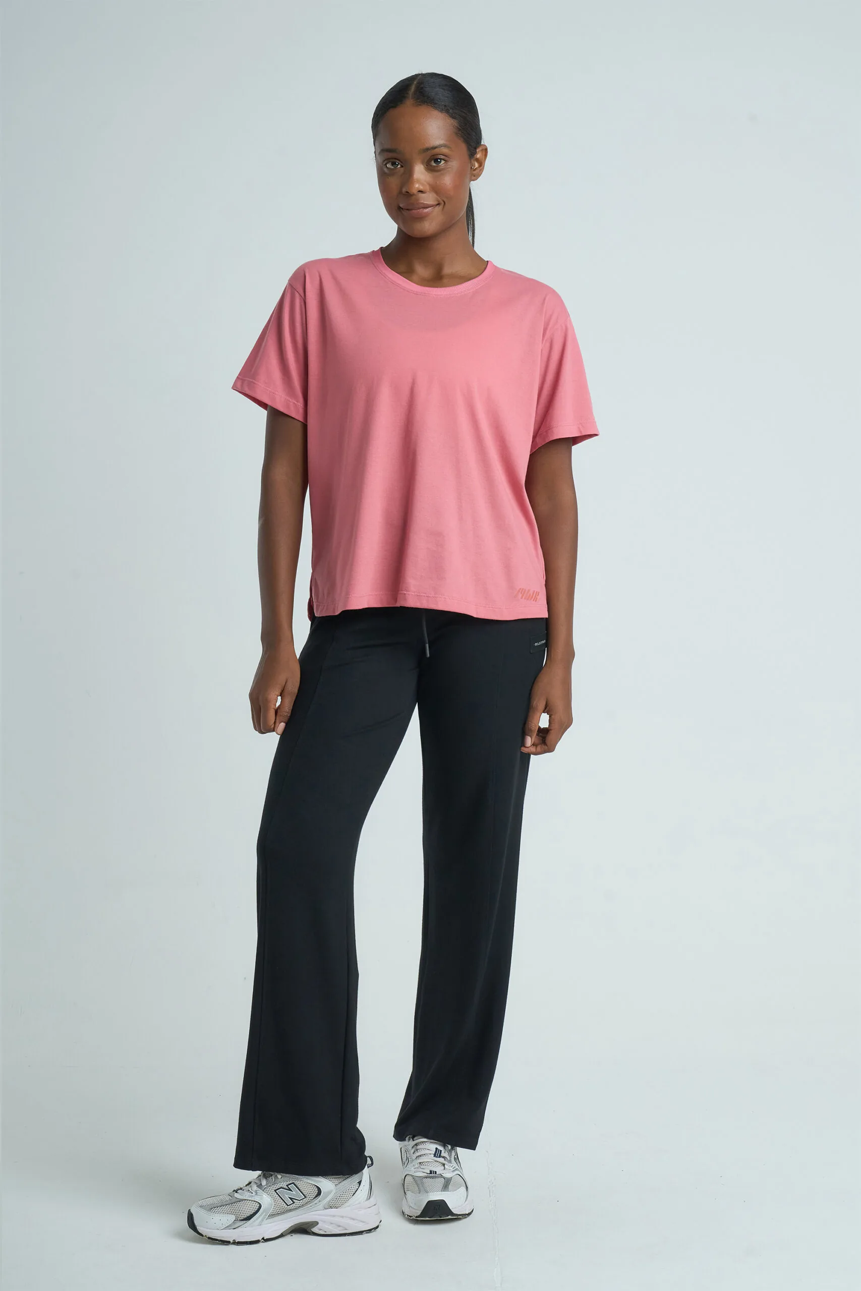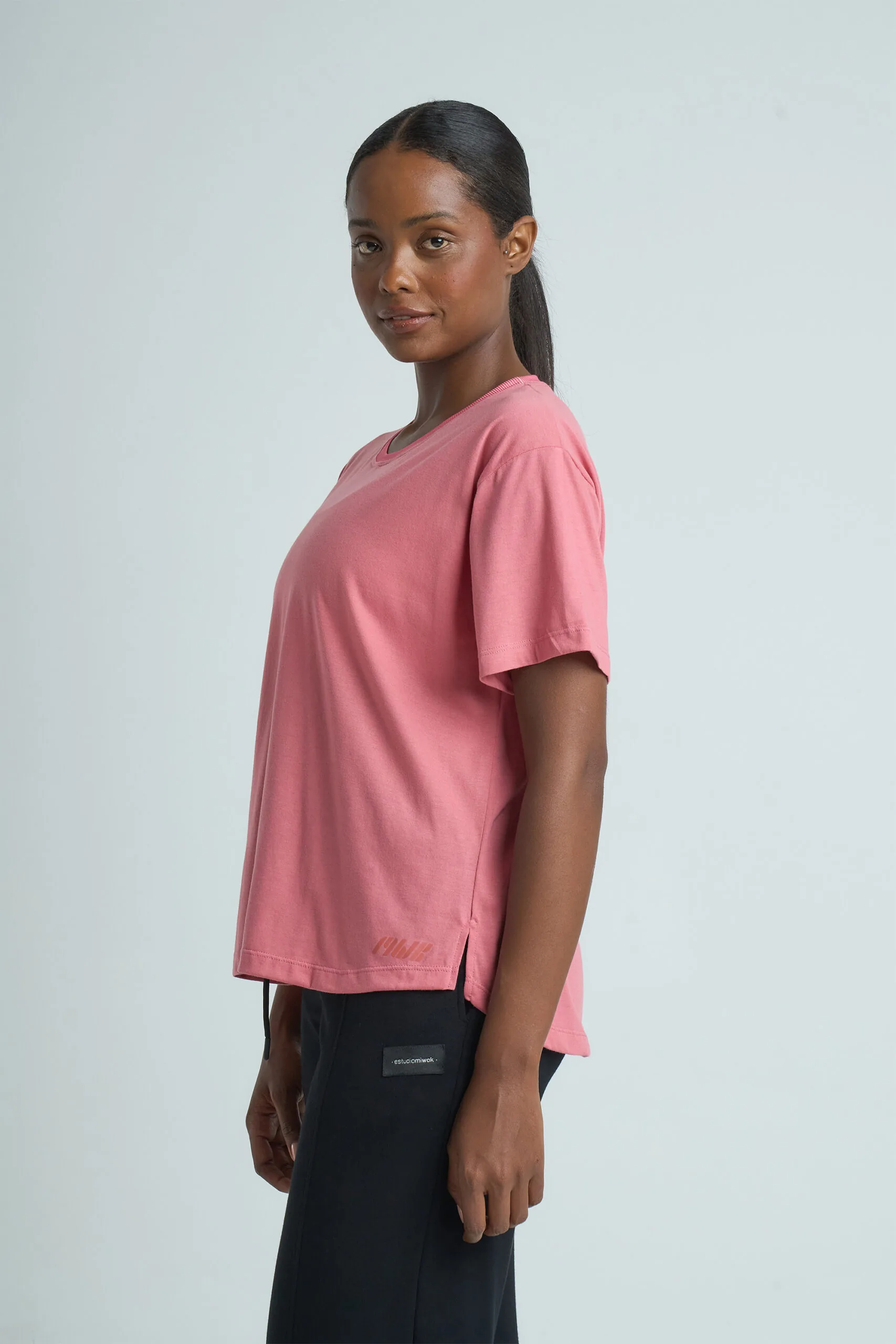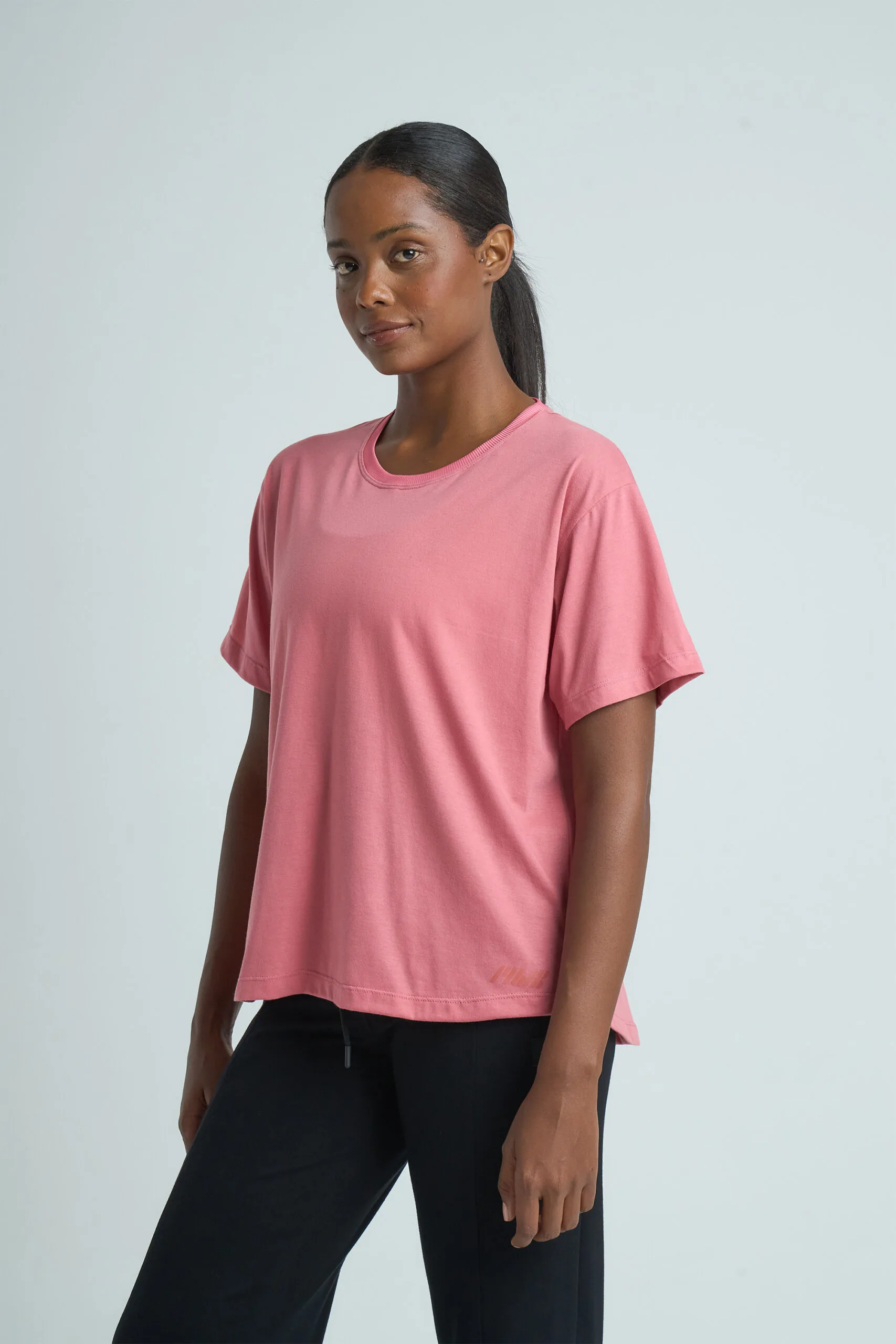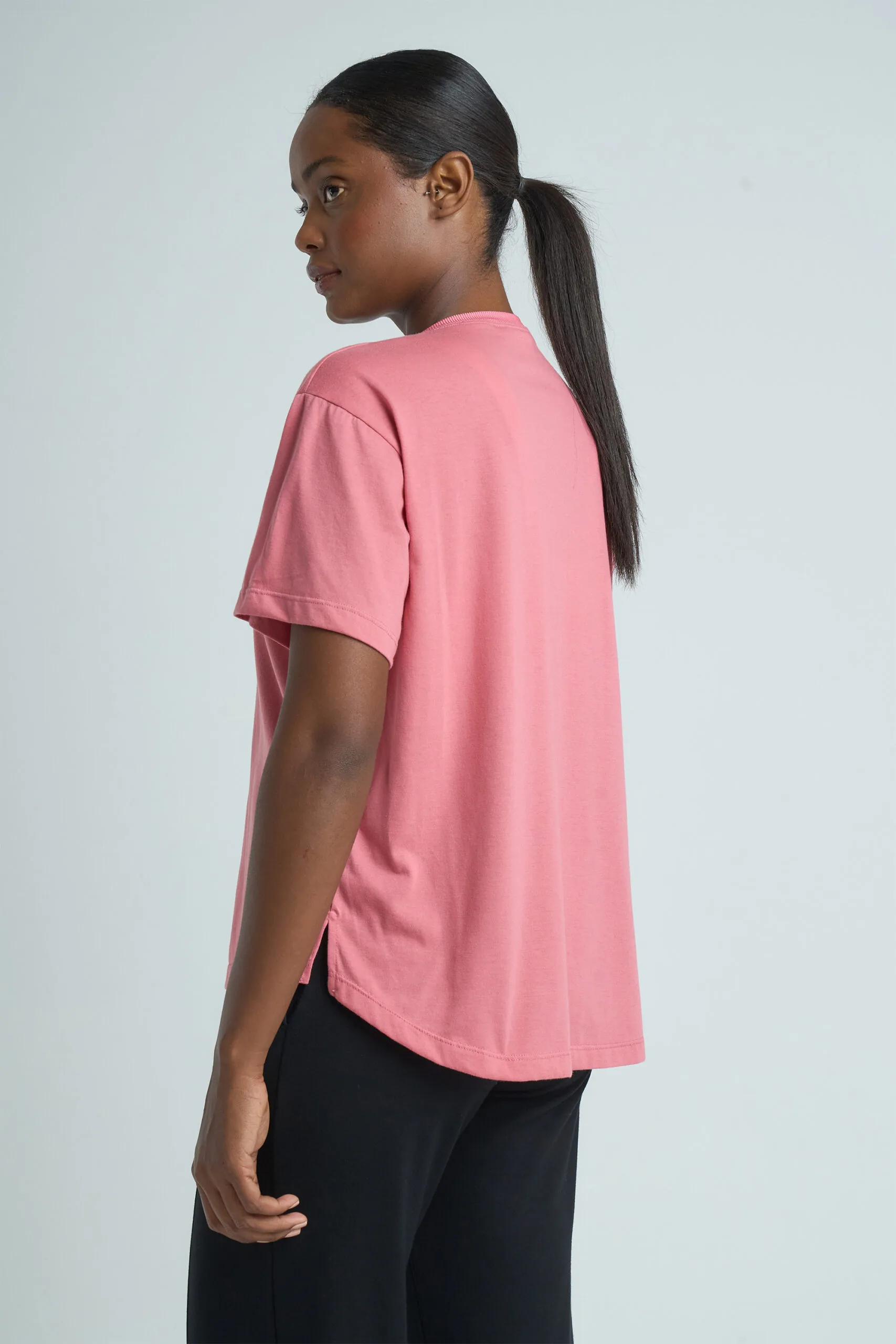 Remera de silueta recta y manga corta a 3/4, con estampa diferenciada plastisol en la parte inferior, escote redondo, detalle de tajo y ligeramente más largo en el trasero para garantizar la máxima comodidad. Confeccionada en tejido ultraliviano de tacto suave.