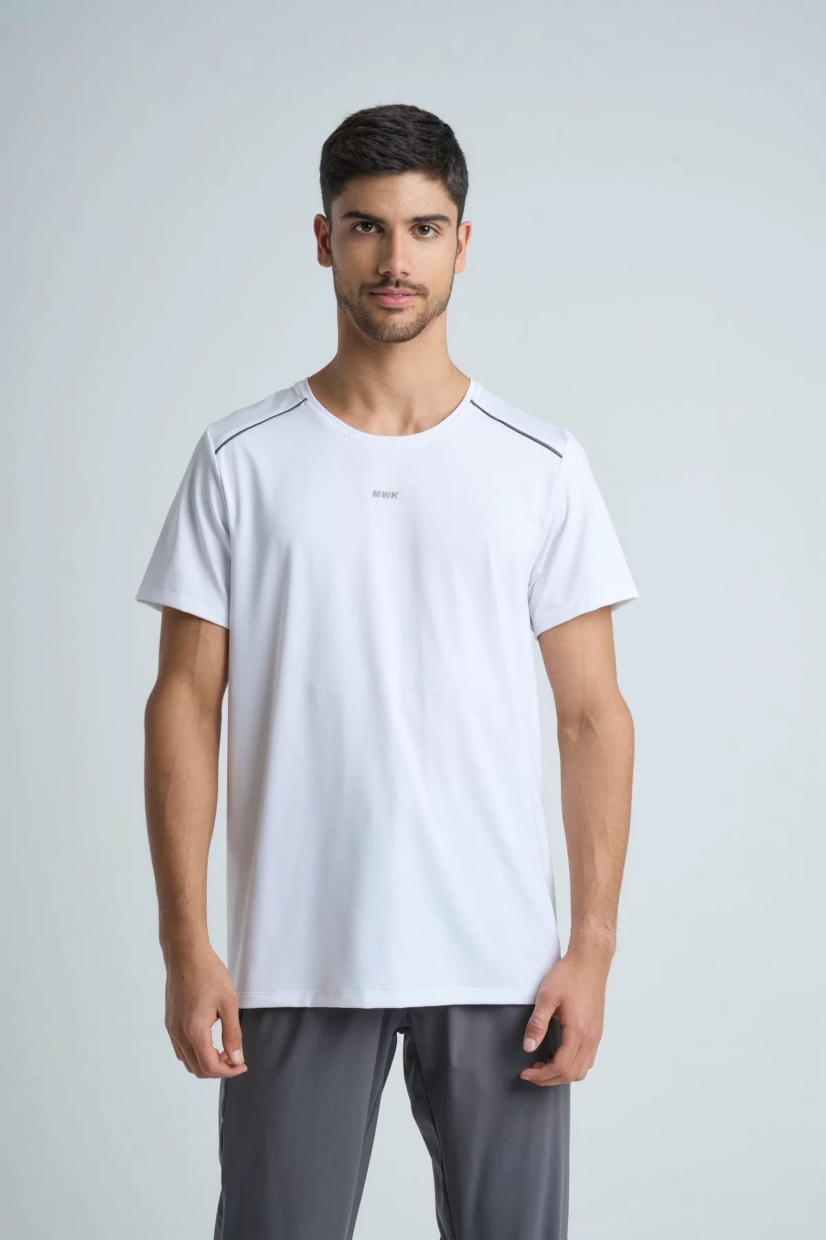 Remera deportiva de entalle clásico, diseñado para el deporte de alto rendimiento nocturno con sutiles recortes favorecedores para armar la silueta. Confeccionado en textil ultraliviano de Microfibra ultra soft con spandex que se adapta al cuerpo para ofrecer un libre movimiento. Con su tela de secado rápido, esta prenda es ideal para mantenerte cómodo y en rendimiento durante tus entrenamientos. Cuenta con detalles de vivo en el frente y vinilo reflex MWK.