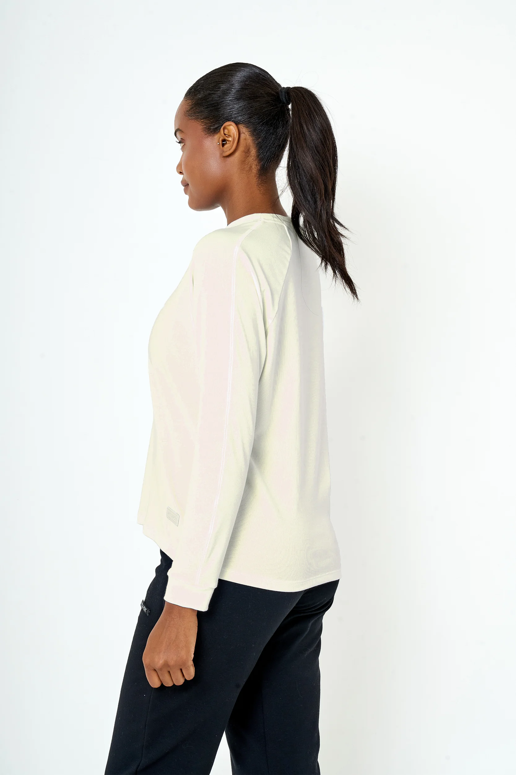 Remera urbana amplia con escote redondo y mangas ranglán, confeccionada en tejido acanalado compacto de algodón sustentable, que ofrece gran rebote, suavidad y elasticidad. Su estructura liviana y con caída fluida se adapta naturalmente al cuerpo, aportando movimiento y confort en uso diario. Presenta costuras planas y pinza en la espalda que mejoran el calce y definen su silueta. Con su leve brillo y mano soft, es una prenda ideal para uso urbano con estilo relajado y contemporáneo.