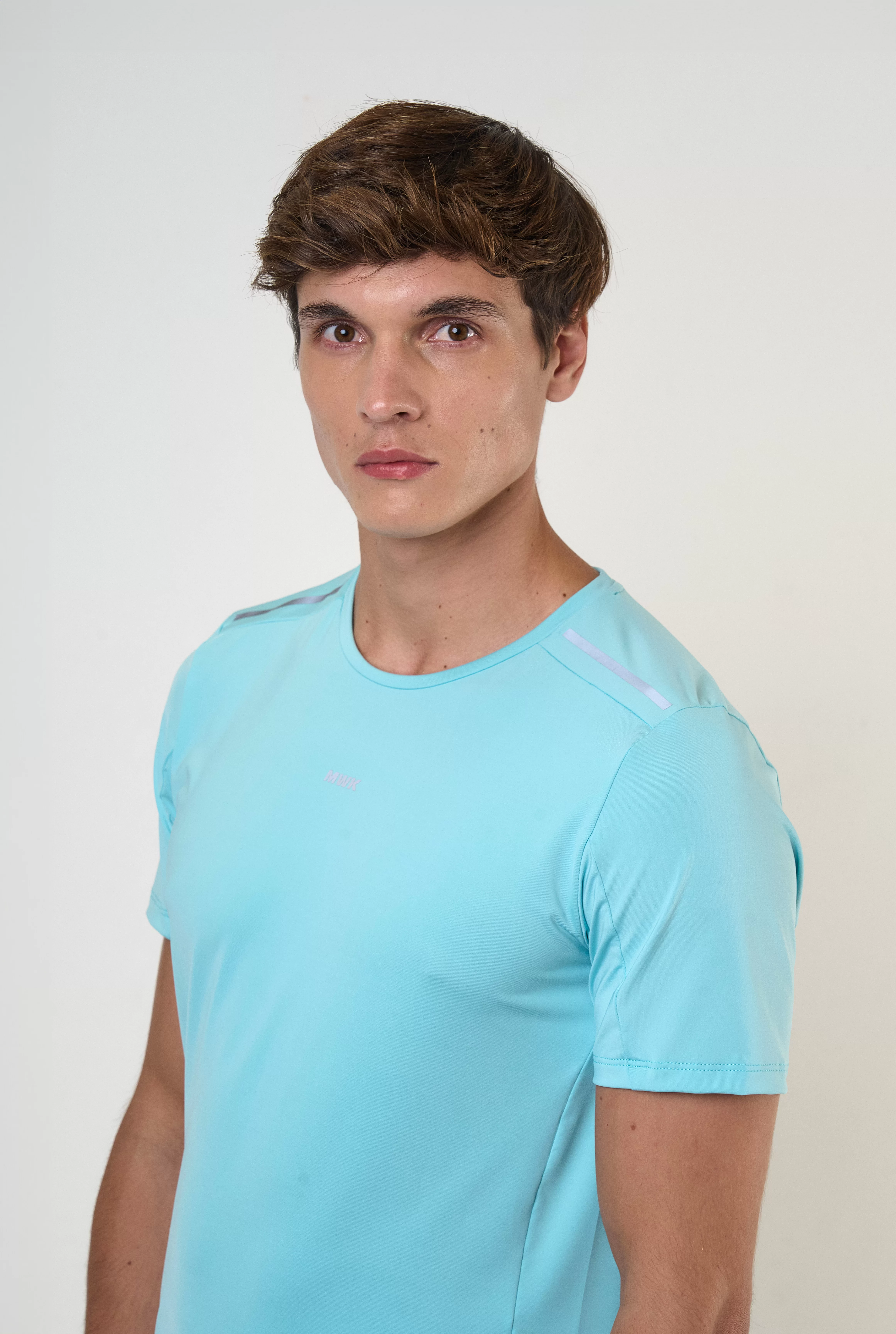 Remera deportiva de entalle clásico con recortes, diseñado para el deporte de alto rendimiento nocturno con sus detalles reflex estratégicos para mantenerte visible en cada ocasión.