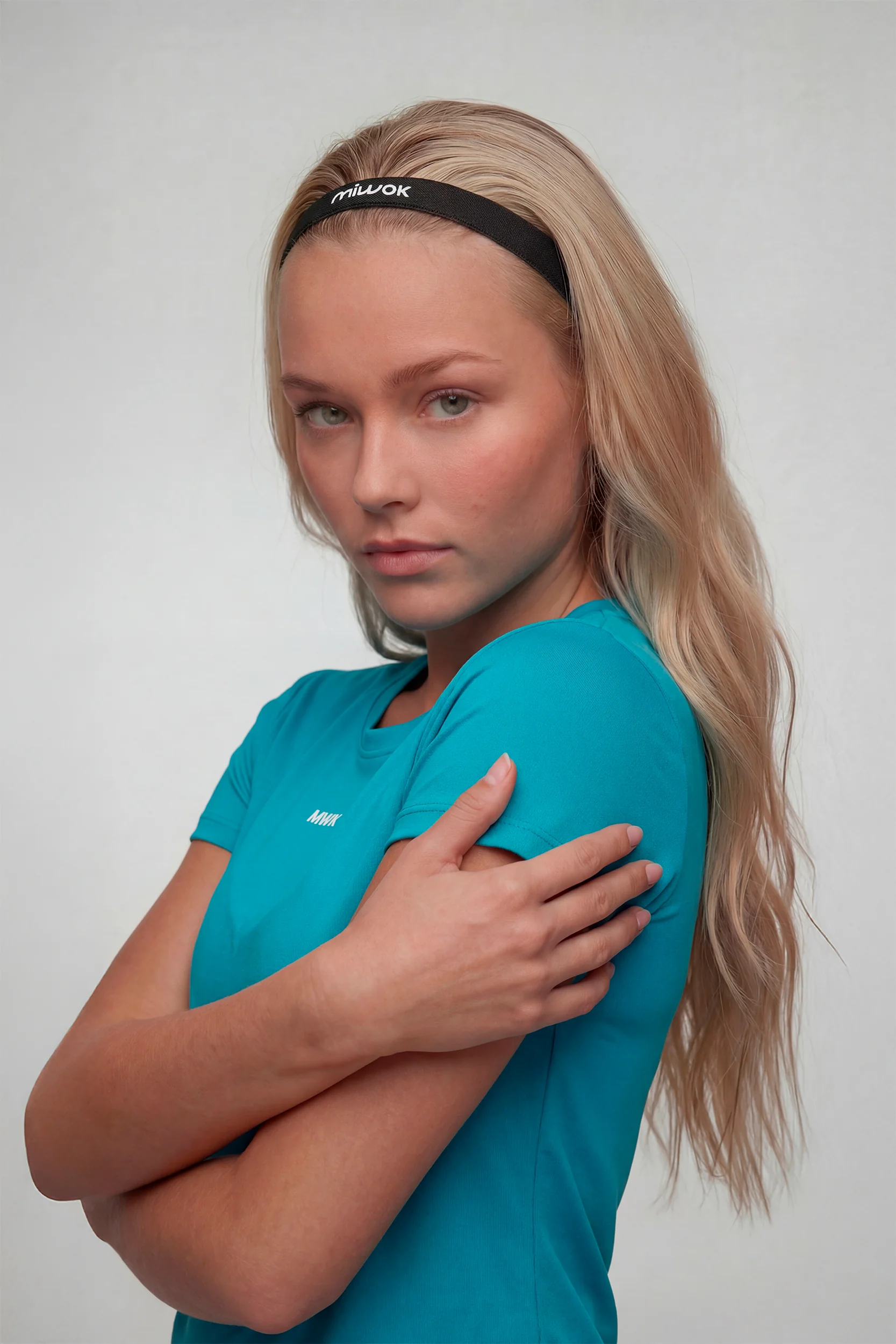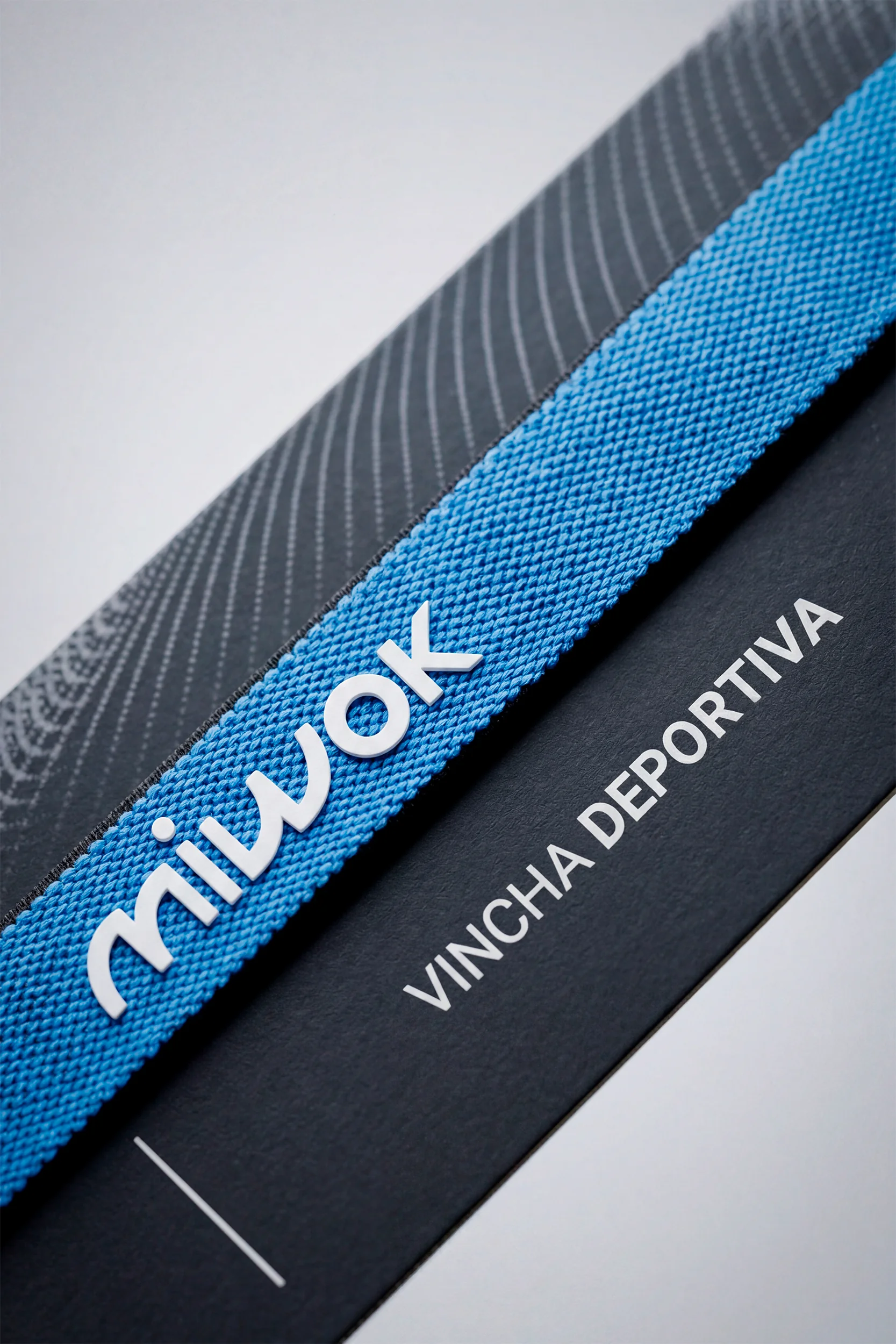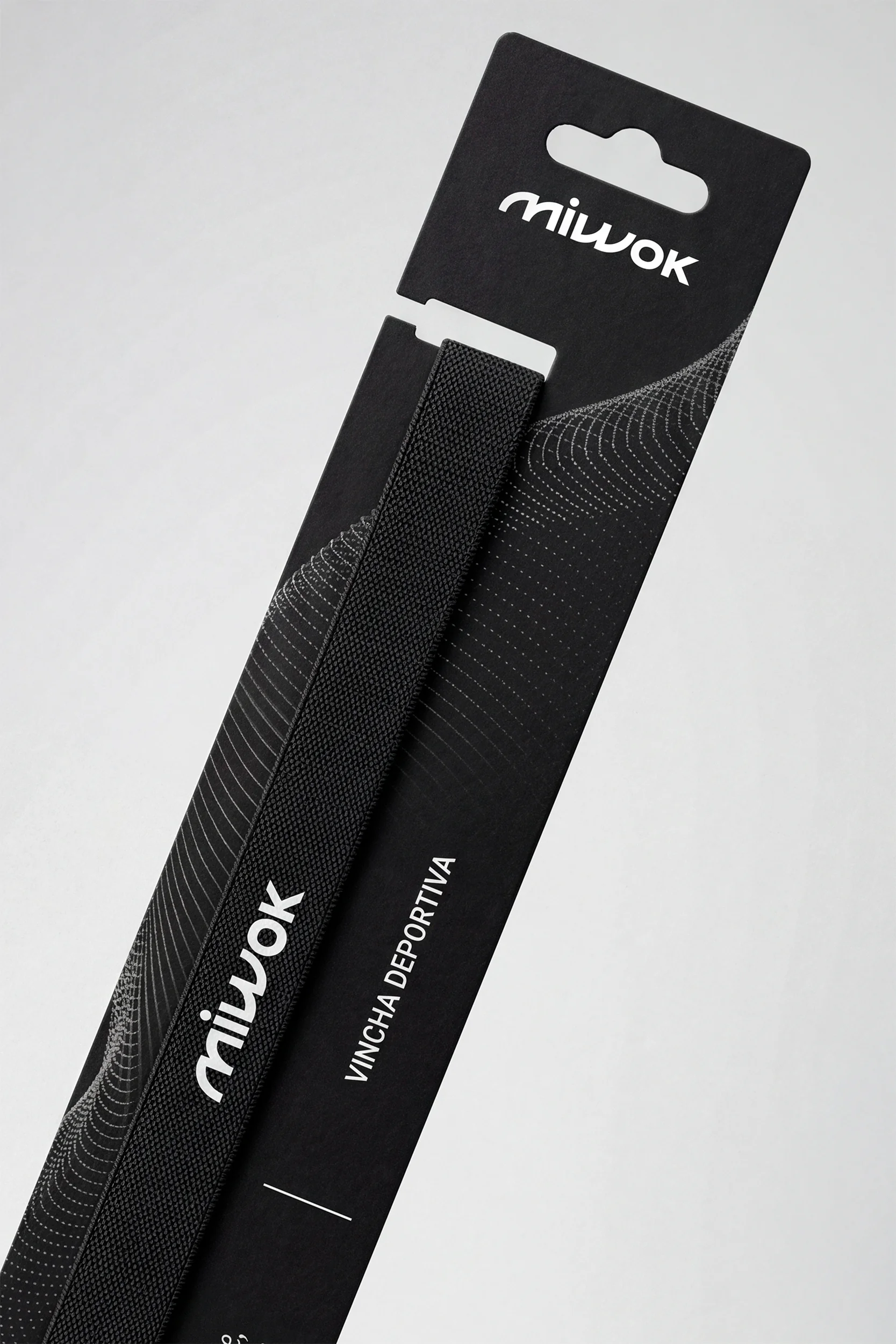 Vincha antideslizante con interior de agarre y grifa MWK, que asegura sujeción y confort en movimiento.